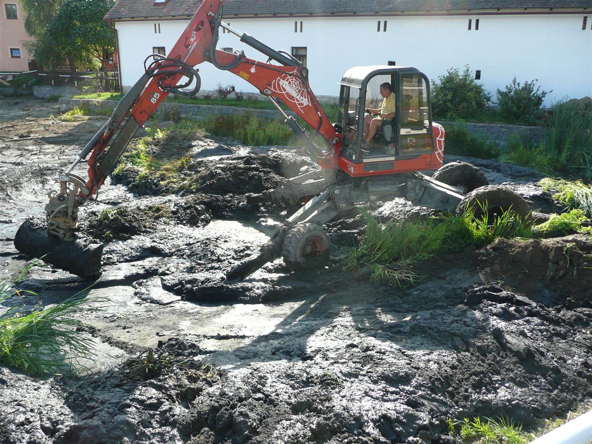 Oprava rybníku v Chramostech