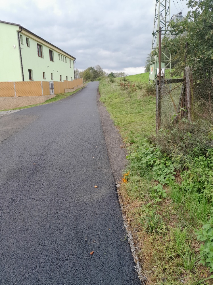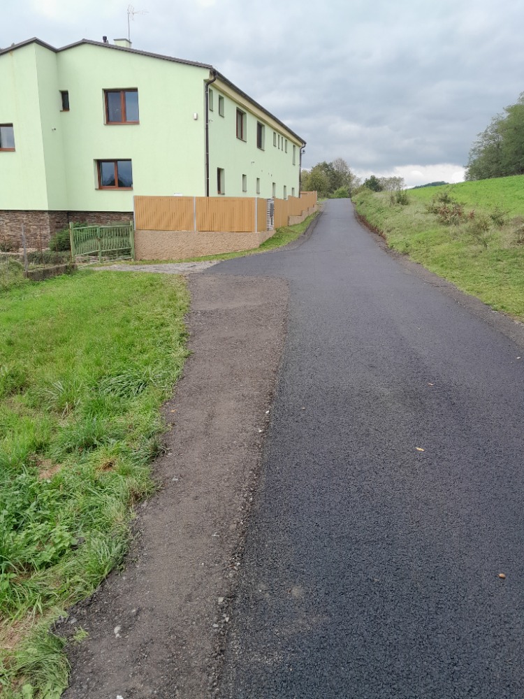 Nový asfaltový kryt komunikace hráz rybníka Musíka, náves Břekova Lhota